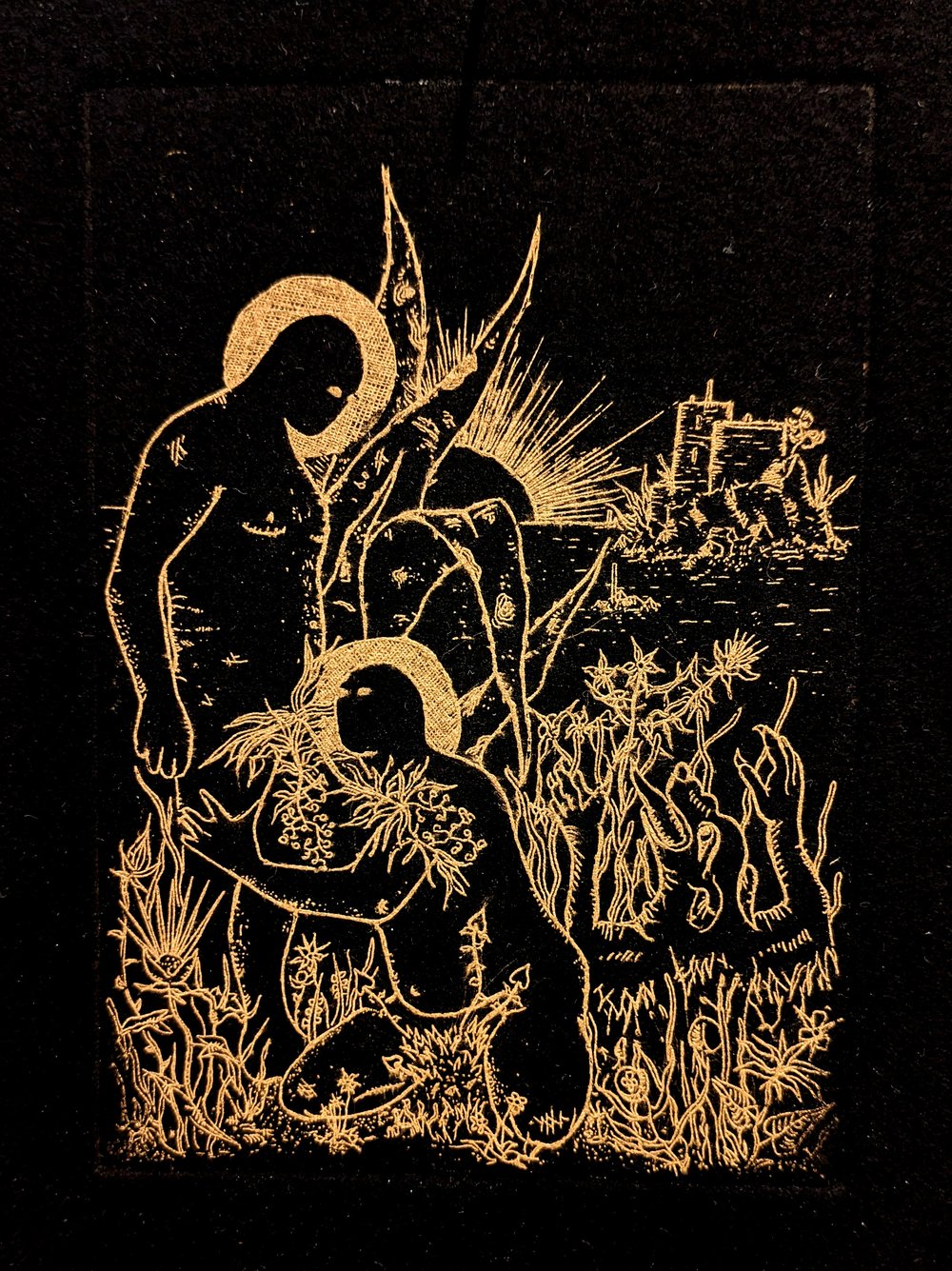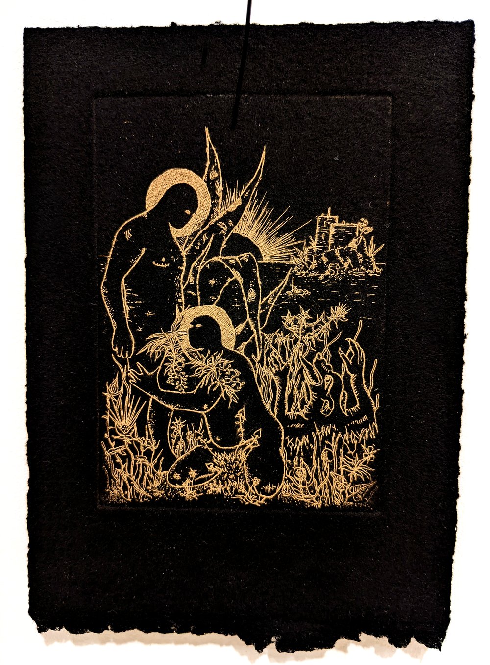 >Encre Charbonnel dorée sur Vélin Rives noir 280g/m²