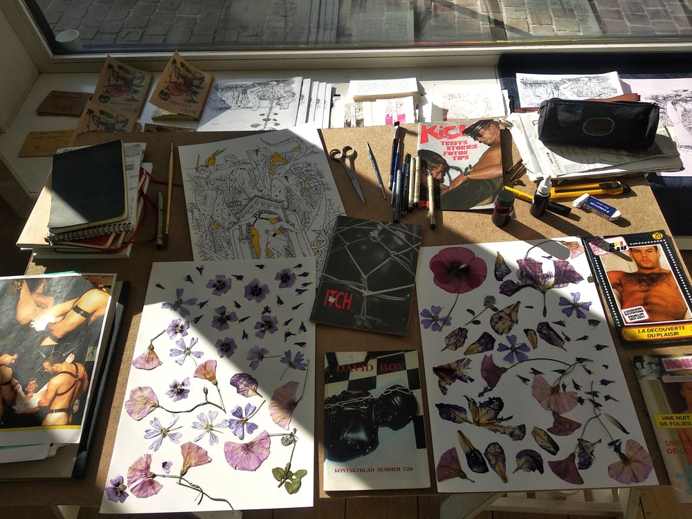 En bas à droite, à la place des noms botaniques en latin qu'on trouve traditionnellement sur un herbier, j'ai collé des petites annonces tirées de Projet X, un magazine des années 1990 sur les sexualités hard et déviantes.