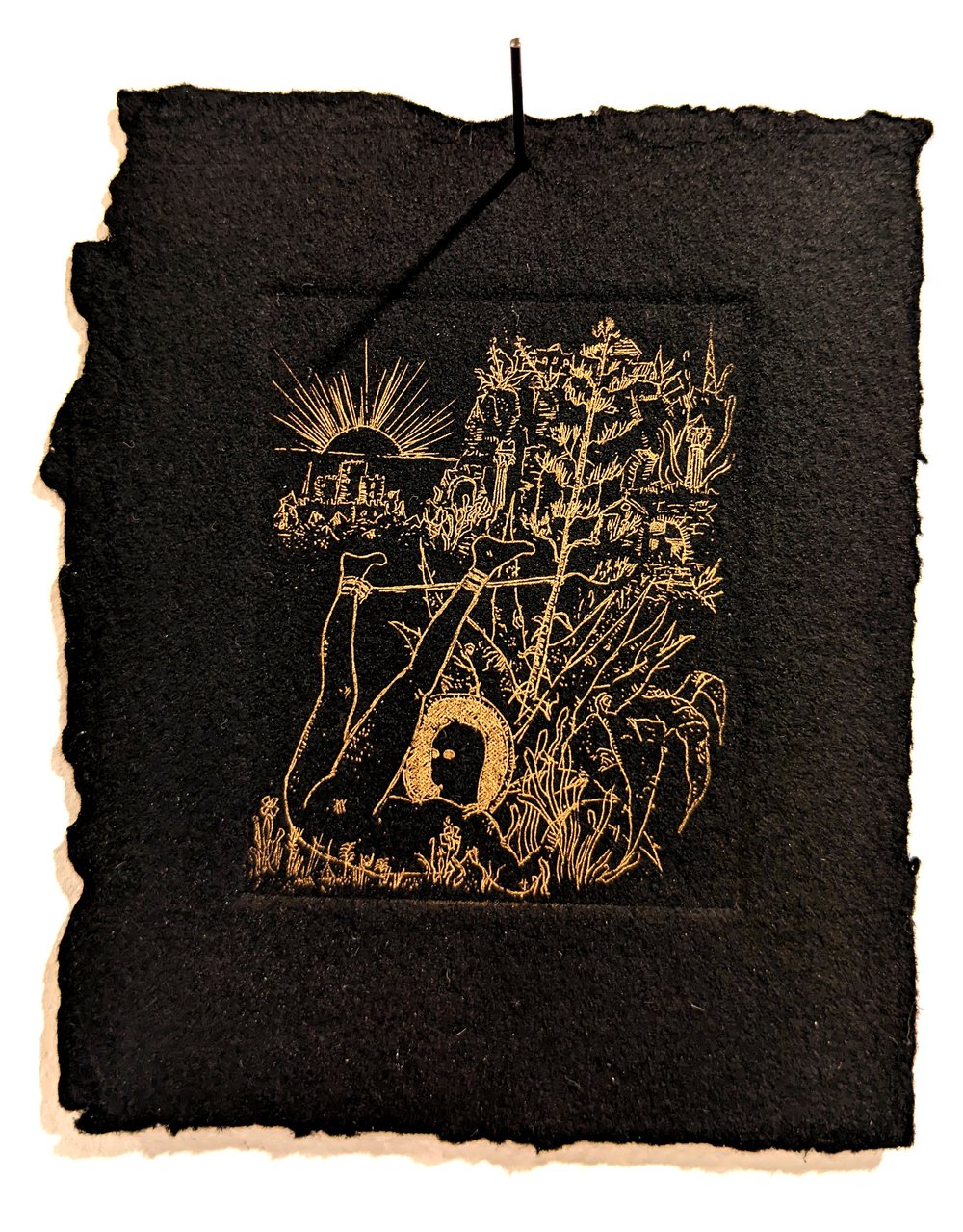 >Encre Charbonnel dorée sur Vélin Rives noir 280g/m²