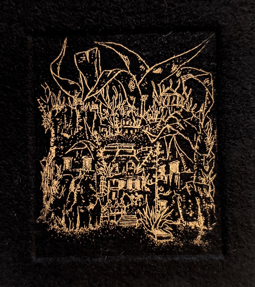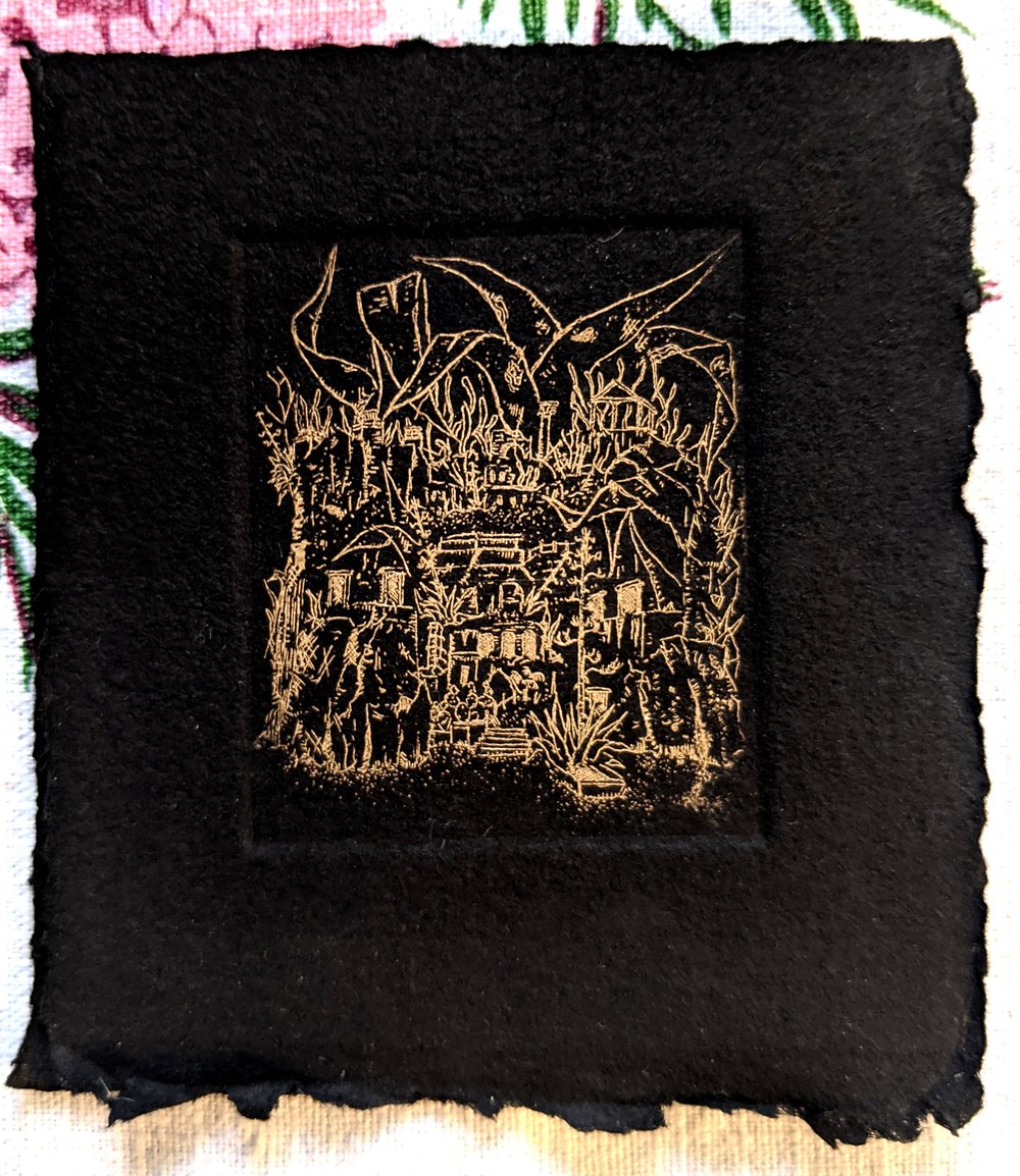 >Encre Charbonnel dorée sur Vélin Rives noir 280g/m²